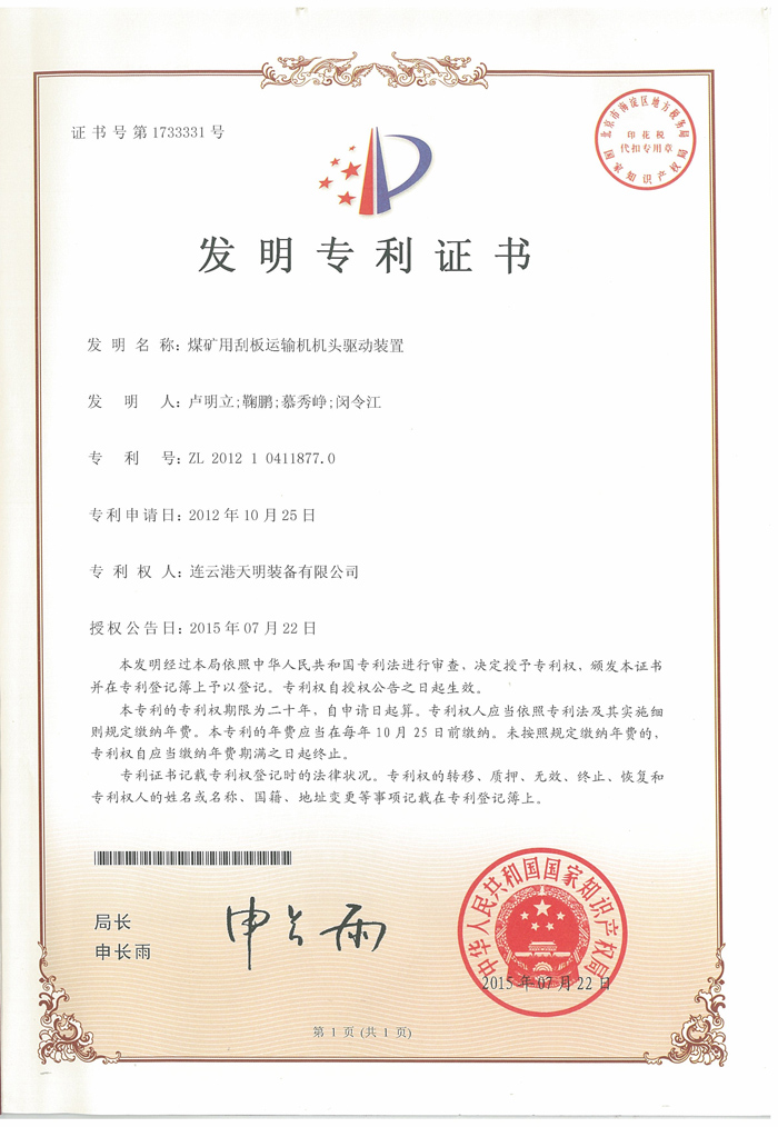 ● 2015年刮板输送机紧链装置荣获中国煤炭工业发明专利一等奖